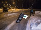 У ніч на 5 березня в Києві на перетині вулиць Академіка Заболотного та Івана Сірка вантажний автомобіль DAF врізався в стовп і перекрив рух транспорту.