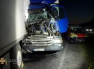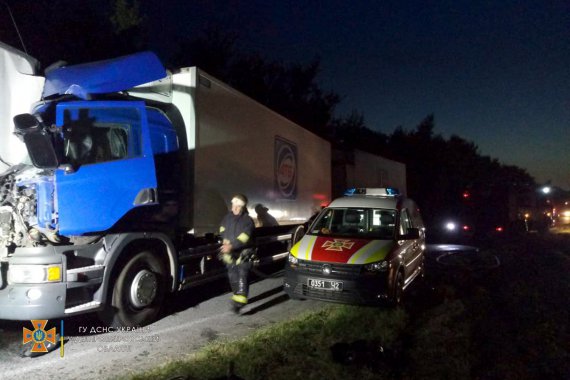 "Водій Skania рухався в напрямку селища Солоне. Не впорався з керуванням та зіткнувся з легковим автомобілем Skoda Octavia, який стояв на узбіччі на тимчасовій зупинці. Після чого легковий автомобіль продовжив некерований рух та зіткнувся з вантажним автомобілем Mercedes-Benz 1824", - розповіли рятувальники.