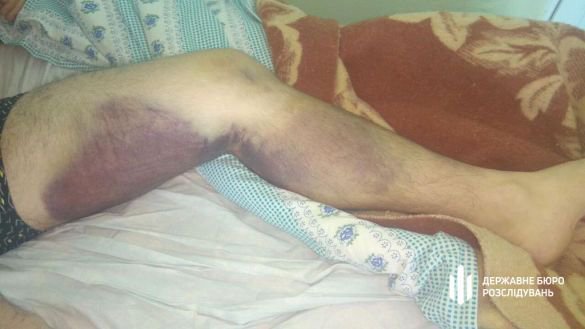 "Щоб одержати зізнання, били, зламавши об нього залізний стілець. Після того на потерпілого вдягли кайданки та били руками, ногами, шлангом від вогнегасника, а також пластиковою пляшкою з водою по голові, обличчю та тулубу", - розповіли слідчі ДБР.