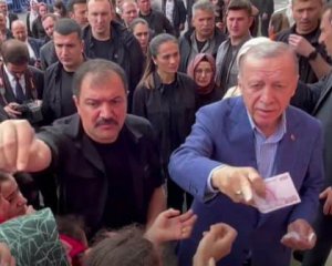 Чинний президент Туреччини Реджеп Таїп Ердоган роздавав гроші на виборчій дільниці, де він голосував у другому турі президентських виборів у неділю.