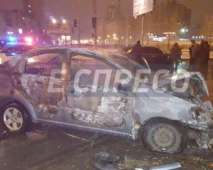 Під час ДТП ніхто не постраждав. Таксі згоріло вщент. На місці працюють слідчі.