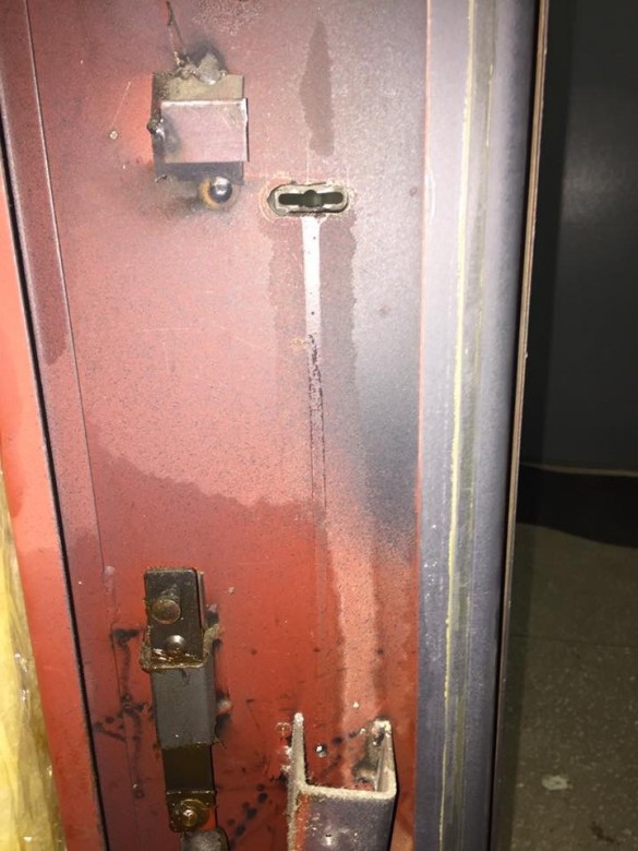 "Приїхали додому. Відчули різкий запах гуаші. Я довго шукав джерело і знайшов - броньовані двері з патьоками. Погугливши і поспілкувавшись зі знавцями, ми зрозуміли, що є підозра на фенол. Дуже сильна отрута. Запах, за словами сусідів,тримається вже днів п'ять, ще таке ж джерело в одному з ліфтів. Виходить нас хтось труїть", - каже Вадим.