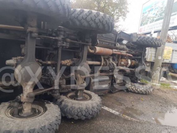 В Одесі на об'їздній дорозі сталася ДТП за участю військової вантажівки. Вона перекинулася на бік.