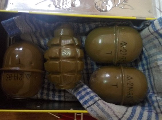 Правоохоронці з'ясували, що чоловік був мобілізований до лав Збройних Сил України та проходив службу у зоні проведення антитерористичної операції. Під час проходження служби в зоні АТО він, приїжджаючи додому у відпустку, привіз із собою чотири ручні гранати РГД-5 та Ф-1 та п'ять запалів до них.