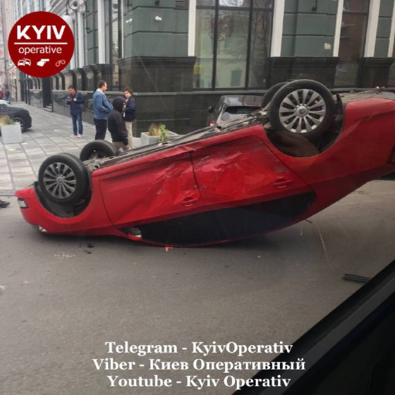У центрі Києва 6 вересня, на перетині вул. Іллінської й Волоської, сталася аварія з переверненням.