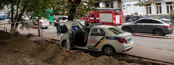 1 серпня на вулиці Тарасівській у Києві сталася аварія. Автомобіль Renault служби держохорони з'їхав із дороги і врізався в дерево.
