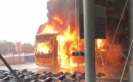 Автобус в якому виникла пожежа згорів вщент. Причиною інциденту називають несправний двигун. Інформації про постраждалих не має.