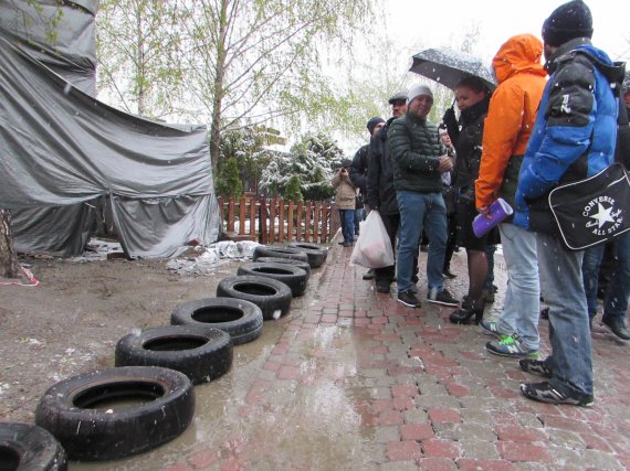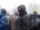 Перед акцією приїхали 2 автобуси спецпризначенів, які вишикувалися перед будівлею. Активісти знесли шини.