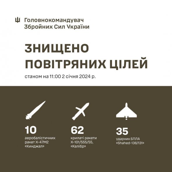 У ніч проти 2 січня ворог повторив масовану атаку засобами повітряного нападу різних типів, як це було 29 грудня.