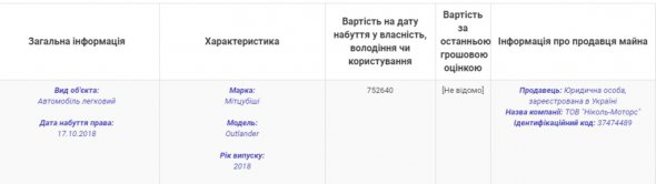 У декларації його дружини, члена Вищої кваліфікаційної комісії суддів Оксани Назарової зазначено, що восени 2018 року вона купила Mitsubishi Outlander 2018 року випуску.