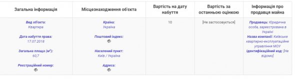 Відповідні дані внесено до електронної декларації військовослужбовця. Там зазначено, що права на нерухомість він отримав 17 липня 2018 року від квартирно-експлуатаційного управління МОУ.