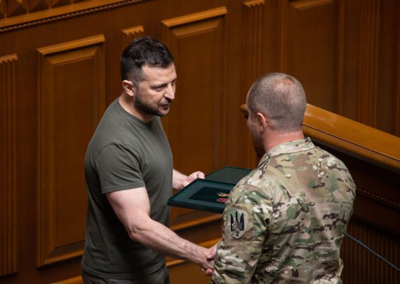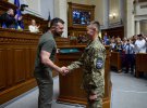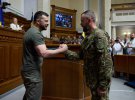 Президент Володимир Зеленський із нагоди Дня української державності вручив у Верховній Раді нагороди українським військовослужбовцям.