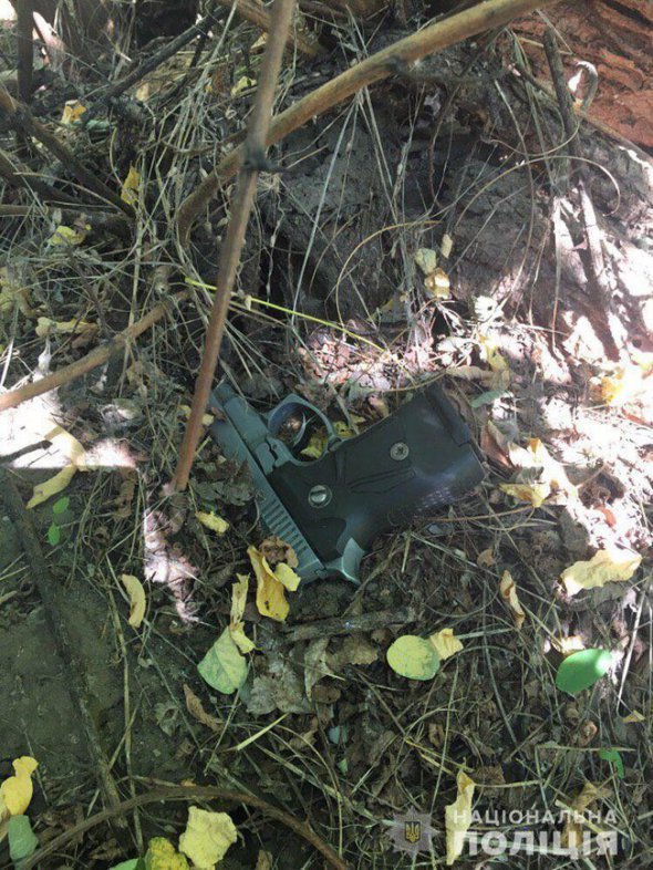 На території скоєння злочину патрульні виявили дві гільзи, золотий хрестик постраждалої дівчини та пістолет травматичної дії.