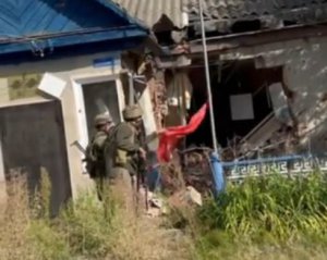 Воїни Збройних сил України зірвали червоний прапор російських окупантів у селі Нова Гусарівка в Харківській області.