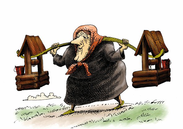 Словосполучення "дві відрі" часто зустрічається у творах Івана Нечуя-Левицького (1838–1918).
