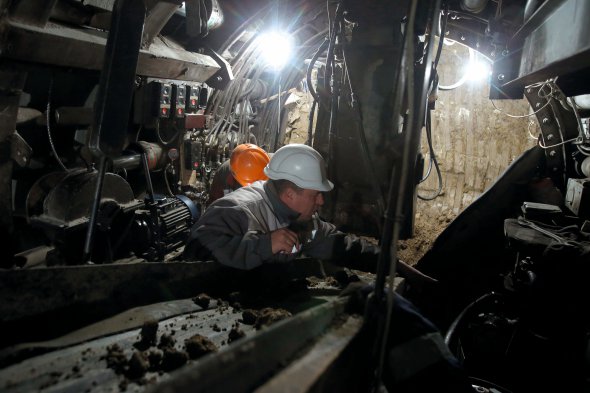 Драбиною спускаємося в шахту. Тут тепліше, ніж на вулиці. Тьмяно, горять кілька ламп. Тунелем тягнеться вузькоколійка, якою підвозять будматеріали. Наприкінці 20-метрового коридору стоїть прохідницький щит. Його обступили п'ятеро людей. Хочуть запустити й показати, як працює. Чоловік із чорною бородою пропонує каву. Відкриває чемодан, у якому складені чашки. Дістає дві, ополіскує кропом з електрочайника.