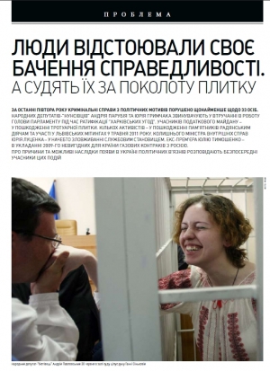 Народних депутатів-"нунсівців" Андрія Парубія та Юрія Гримчака звинувачують у втручанні в роботу голови парламенту під час ратифікації "Харківських угод". учасників податкового майдану – у пошкодженні тротуарної плитки. кількох активістів – у пошкодженні пам'ятників радянським діячам та участі у львівських мітингах 9 Травня 2011 року. колишнього міністра внутрішніх справ Юрія Луценка – у начебто зловживанні службовим становищем. екс-прем'єра Юлію Тимошенко – в укладанні 2009-го невигідних для країни газових контраків з Росією.