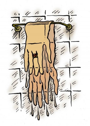 Колись я думав, що британських учених узагалі не існує. Що їх вигадали журналісти, аби підвищити статистику відвідування новинних сайтів. Аж ось написав їм листа. Хотів довідатися, що робиться з домашніми рушниками, адже вдома ніхто не має сушок - науковці мусили врахувати цей факт. Отримав відповідь наступного ж дня - виявилося, що британські вчені таки є. Пояснили, що бавовняних рушників у своїх експериментах не використовували. Але результати досліджень дозволяють їм стверджувати, що найкращий спосіб позбутися бактерій - це використовувати одноразові серветки, тоді - рушник, сушка - на третьому місці. При цьому слід витирати зовнішній бік долонь та між пальцями. Не залишати рушник вологим, аби бактерії, що на ньому залишилися, не перелазили на руки інших людей. Тепер беру рушник на роботу. Пхаю в кишеню і йду до вбиральні. Нікому його не показую, бо можуть подумати, що я збожеволів.