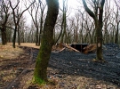 При вході в ліс видно свіжу галявину, на якій стирчать пеньки.