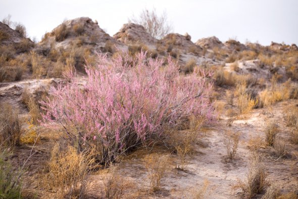 На подвір'ї бачимо двох верблюдів. Господар пояснює, що стада на кілька днів можуть піти далеко в пустелю. Їдять тамарикс – рослину, в якій багато води, тому додому не поспішають.