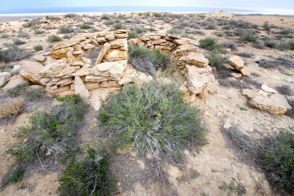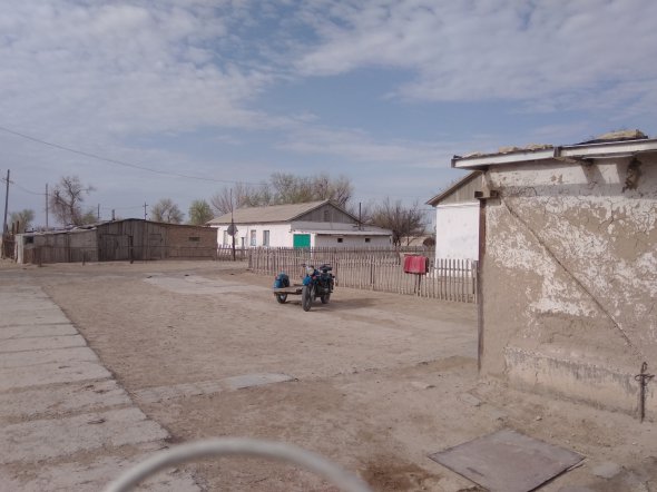 Дорогою до моря заїжджаємо в останнє село на шляху – Кубла-Устюрт. Там живуть 40 сімей. Одноповерхові будинки. Деякі з самана – цегли з глини та сіна, що висихає на сонці. В Україні їх назвали би мазанками. Практично немає дерев. Де-не-де бігають кури, стоять телята.