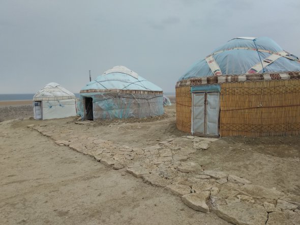 За 4 год. приїжджаємо до юртового табору на березі Аральського моря. На території є невеликий електричний генератор, привізна питна вода, душова кабіна й туалети на вулиці.
