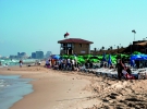 Цьому житловому комплексу близько двох десятиліть, і щороку тут щось зводять, переробляють. Під вікнами будинку Черновецького роблять набережну, планують облаштувати пляж. Поки що ж треба ходити на сусідній, хвилин 5. Пляж платний – дітям 4 шекелі в будні – на наші гроші це приблизно 9 гривень, і 7 шекелів – 15 гривень – у вихідні. Дорослим – 7 та 10 шекелів відповідно. Пляж добре облаштований. Є рятувальники. Можна орендувати тапчан за 12 шекелів – 27 гривень – стілець, столик та парасольку від сонця – усе по 6 шекелів і засмагати хоч цілий день. На пляжі безкоштовні душ і туалет. Є кафе.