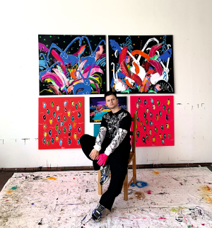 – Насправді працюю в різних тематиках. Намагаюся себе всебічно розвивати. Серед основних – фігуратив. Поєдную абстрактні мотиви з людською натурою. Я надаю різні образи. Стараюся зафіксувати час, у якому живу, свої ідеї, думки. Друга тематика – це анімалістика. У мене є різні мотиви, пов'язані з фламінго, биками, конями, пінгвінами. Останнього року працюю над картинами, на яких зображено зайців. Третя тематика – флористична. Четверта – це портал. Туди входять і пейзажі, і ліси. І також можна зустріти в мене роботи з елементами космосу. Інколи поєдную їх з абстракцією, інколи з природою. Останнім часом я почав працювати в абстрактному напрямі.