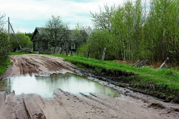 У селі – ґрунтівка, точніше бездоріжжя. Від рясних дощів калюжі на кілька метрів, під ногами чвакає багнюка. Пісок липне до взуття. Залишки парканів понахилялися в усі боки, хати позавалювалися і стали подібні на купи сміття, до яких наближається ліс і скоро все поглине. Село здається мертвим. І, якби не молода трава, цвіт черемхи і вишень, навіть несправжнім. Наче декорація до фільму. Ні гавкоту собак, ні мукання корів. Тільки зозулю чути в лісі.