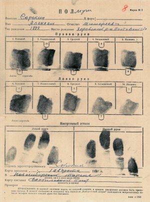 Киянина, 64-річного Олексія Сорокіна, заарештували працівники Народного комісаріату державної безпеки Української Радянської Соціалістичної Республіки 26 червня 1941-го. Мешкав за адресою: вул. Перша Лугова, 40-а, кв. 2.