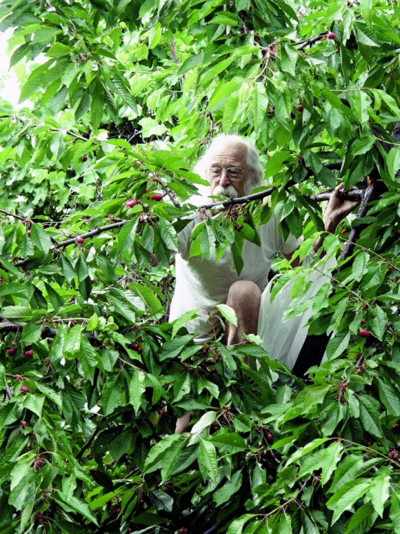О 18.00 збирається в гості до сусідів, які живуть під горою. Перед тим лізе на черешню, рве для них повний кульок ягід.