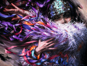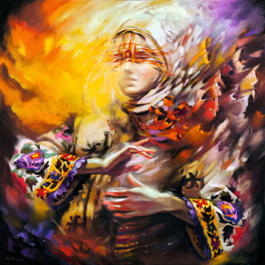 – Це перша картина серії, бо саме з неї почався мій творчий шлях. Я написала понад сто образів мотанки з різних регіонів України. Обличчя то замотані, то відкриті. Деякі картини розквітали та світилися, інші заходили в ніч. Дослідження строїв для мотанок із книг та музеїв переросло в експедиції віддаленими селами і збір власної колекції давнього автентичного одягу.