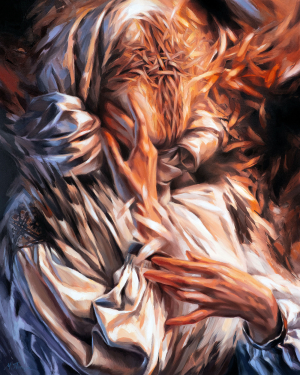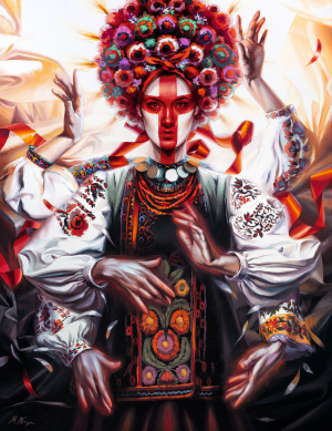 – Кожна картина із серії "Мотанки" починається по-різному. Мені деколи здається, що це не я придумую мотанок, а вони приходять до мене самі. Бачу їх у русі, а картина – наче кадр із фільму, поставленого на паузу. Деколи на мене дивляться, деколи відвертаються, а інколи ховають погляд. Складно сказати, чому відбувається саме так. Мені подобається показувати людям забуті елементи українського строю. Тому часто буває так, що я можу побачити буквально одну стрічку чи один елемент одягу – і на цій деталі починає будуватися вся композиція. Інколи просто хочу передати якусь емоцію, рух чи думку й уже потім думаю, у що вдягнути натурницю, щоб максимально детально відтворити те, що бачу у своїй уяві.