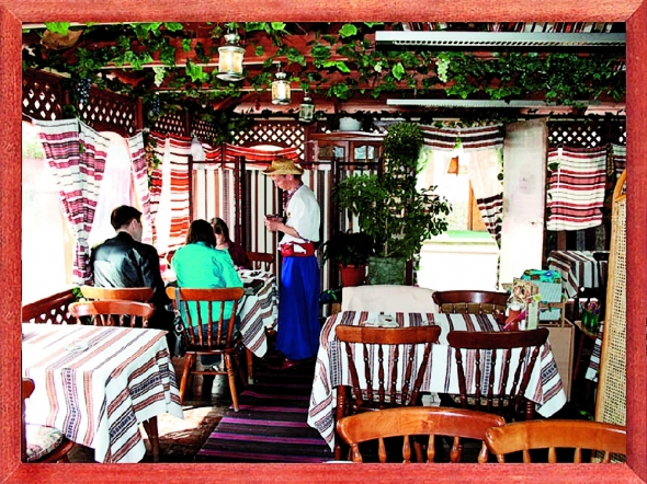 Інтер'єр ресторану – хата-мазанка, розписана квітами. Поїхав у Переяслав, сфотографував сільську хату.Хлопці-офіціанти ходять в червоних чоботах, шароварах і вишиванках, дівчата – у спідницях й запасках. На свята одягають сорочки, вручну вишиті бісером. Терпіти не можу ресторани, в яких офіціанти носять під вишиванку джинси.