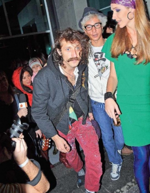 Лідер Gogol Bordello 37-річний Євген Ґудзь в обляпаних фарбою штанях, вовняних шкарпетках і капцях із черепами приїжджає близько першої ночі - прямо з виступу. Кілька хвилин із колегами сидить за столиком, а тоді вилазить на нього й починає танцювати під балканські ритми.