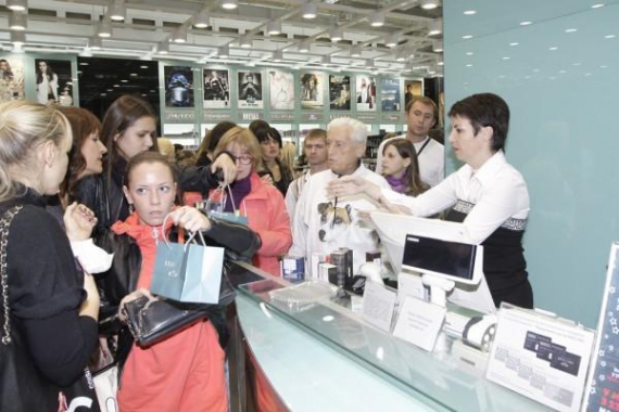 У магазині косметики Brocard жінки ставлять чоловіків у чергу, а самі біжать до вітрин із косметикою. Жменями набирають туші, креми й тональні креми. У взуттєвому магазині дві клієнтки не поділили чоботи 41-го розміру. Поряд троє підлітків мало не б'ються за пару кросівок.