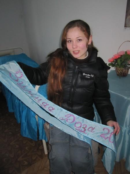 На конкурсі я виступала в образі ангела. Пошила міні-сукню з великими крилами. Обклеїла їх білим пір"ям. До зап"ястків приторочила чорні стрічки і ще одну пов"язала на очі. Так і танцювала із зав"язаними очима, а під кінець виступу зірвала всі стрічки.