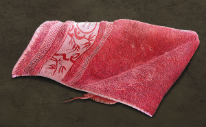 Червоний махровий рушник, пошкоджений уламками, зберігає старший солдат 3-ї окремої штурмової бригади Олександр Мірошниченко на псевдо "Аніматор". Його разом з іншими речами передала з дому дружина.