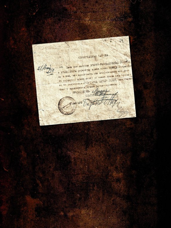 "Дана сия записка военно-революционным советом и командармом директору музея Яворницкому о том, что арестовать или конфисковывать что-нибудь из имущества музея Поля никто не имеет права без особого на то распоряжения командарма батька Махно, что подписями и приложением печати удостоверяется", – йдеться у записці, що зберігається в архіві Державного національного історичного музею ім. Дмитра Яворницького у Дніпрі. У 1902–1917 роках він називався Обласним музеєм ім. Олександра Поля – на честь колекціонера і почесного жителя міста.