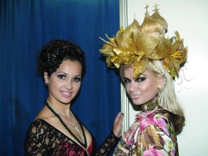 — Це дипломна робота. Саші треба було придумати сучасний образ княгині Ольги, — пояснює викладач Ганна Баштова, 22 роки. — Ми передивилися чимало журналів, але тогочасні зачіски нецікаві. Основні елементи — це плетіння різними стилями, на голову одягали корони і хустки. В Інтернеті знайшли цікаву роботу — будинки з паперу. Згадали, що тоді якраз будували церкви з трьома банями. Маківки Саша зробила спочатку з цупкого паперу. Потім рівно обклеїли волоссям моделі, яка колись його відрізала. Саму декорацію створювала понад місяць.