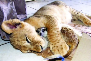 До двох місяців левеня тримали в окремому вольєрі, годували молоком і невеликими шматками м'яса. Назвали його Зінзі на честь зоолога, який виходив тварину.