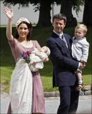 На хрестинах принцеси були королева Марґрете і батько Мері — Джон Дональдсон. Чоловік після одруження доньки переїхав із Австралії до Данії і читає лекції з математики в місцевому університеті Аархус. Він подарував онучці золотий медальйон, який раніше носила його дружина, яка вмерла від раку. А королева піднесла немовляті брошку із самоцвітами. Принцеса Мері сховала обидва подарунки в шкатулку і сказала, що віддасть їх доньці, коли та стане повнолітньою.