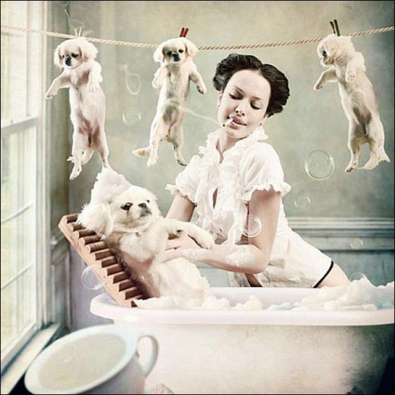 — Комітету з етики й моралі може не сподобатися моя виставка. Голі тіла зараз заборонено фотографувати і виставляти напоказ, — Кассандра у двох коротких білих сарафанах, одягнених один поверх одного. Зупиняється біля портрета Астаф"євої, яка пере у тазику білих цуциків. Підтягує білі гольфи до колін. Просить у бармена шматок лайму. Кладе його на язик: "Простудилася, горло болить".