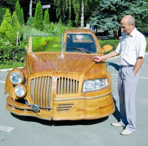 — Увесь світ об'їздив, а такого не бачив, — німець 62-річний Ґільдемар Шліманн плеще в долоні. Біля чернівецького готелю "Буковина" припаркував своє авто місцевий Василь Лазаренко, 41 рік. Машину зробив із дуба. Вона почасти схожа на сучасну автівку, почасти — на ретро-автомобіль.