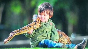 — 2,5-метровий Пабло — улюбленець Чарлі, — каже батько Ґрег Паркер, власник приватного "Парку дикої природи Баларат". — Удав такий важкий, що дитина ледве носить його на собі. Іноді син відволікається на крокодильчиків.