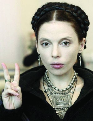 Письменниця 30-річна Ірена Карпа знялася в образі екс-прем'єрки Юлії Тимошенко. Три світлини виклала на своїй сторінці у фейсбуку. Ірена виклала на голові накладну косу. Вбрана у трикотажний жакет із хутряним коміром.