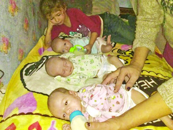 — Дітки — не капризні. Понаїдаються і сплять. Їм місяць від народження, а вже головки трохи тримають. Коника пасуть, — каже 40-річна Наталія Самаріна з міста Козятин на Вінниччині. 13 листопада народила здорову трійню — Гліба, Кирила й Кароліну. З чоловіком 54-річним Михайлом мають ще вісьмох дітей. Старшій Олені — 23 роки.