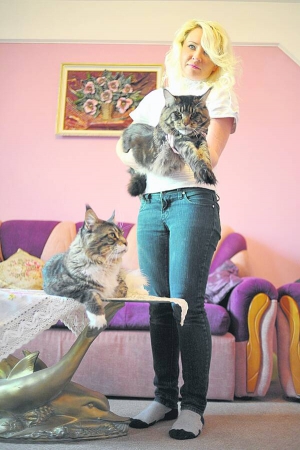 Вона два роки розводить мейн-кунів. Це одні з найбільших у світі домашніх котів. Кошенята народжуються по 100-150 г. Щомісяця набирають до півкілограма. Максимальна вага — 15 кг. Мейн-куни живуть 20 років, залишаються грайливими і рухливими до старості.