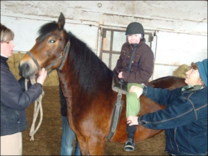 — А мій син першого дня навіть у конюшню не захотів заходити, — розповідає Оксана Музиченко. У її 5-річного сина Артема синдром Дауна. — Тільки на третій день сам сів на Масяню.