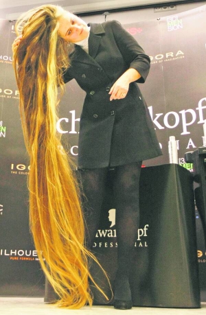 Черкаска 35-річна Анна Янко має найдовше волосся в Україні — 2,21 м. Її внесли до Національного реєстру рекордів.